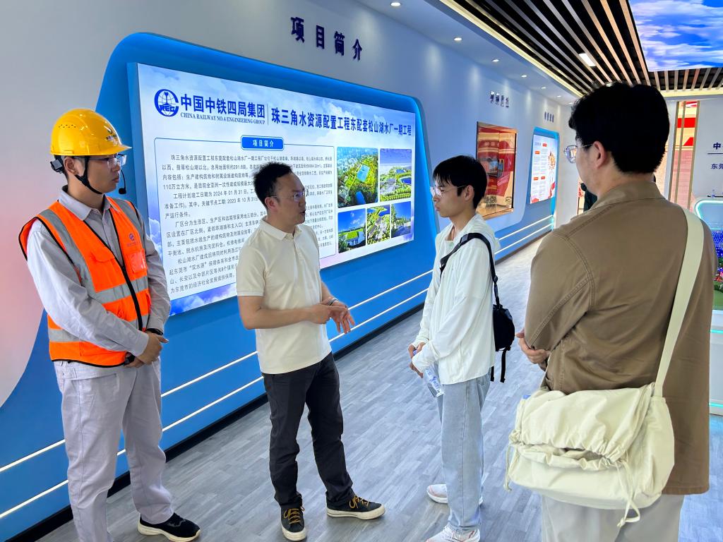 2024年4月11日下午,本科实习调研组学生前往松山湖水厂参观。水厂一期工程是珠江三角洲水资源配置工程东莞市配套工程之一,工程占地面积约19.45万平方米,于2022年2月启动建设,设计供水规模为110万立方米/日,是目前全亚洲一次性建成单体规模最大的水厂。水厂建设融会“科技共山水一色”的设计理念,将折板絮凝池下叠消毒接触池,平流沉淀池、砂滤池下叠清水池,使水厂布局高度集约化,完全融入松山湖的湖光山色中。该水厂计划于2024年6月正式投产运营。水厂水源取自东江和西江,水厂供水范围主要为松山湖园区、大朗镇、大岭山镇及长安镇等东莞经济核心区域,服务人口约210万人。