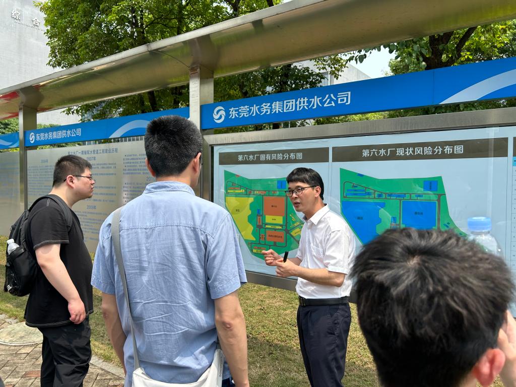 松山湖水厂厂长龙家驹细致地对该水厂的工艺流程进行了讲解,该水厂采用常规工艺结合臭氧—生物活性炭深度处理工艺,通过深度处理,有效去除水体中的有机物,达到深度净化目的,进一步提升水质、改善口感。同时,松山湖水厂通过建设智慧水厂、推进智能调度和智能投加管理、运用BIM数字孪生技术等打造智能一体化运营平台,实现供水厂生产全流程自动化控制、运维数字化管理、安全一体化管控,强化从原水到出厂水全流程的安全保障。
