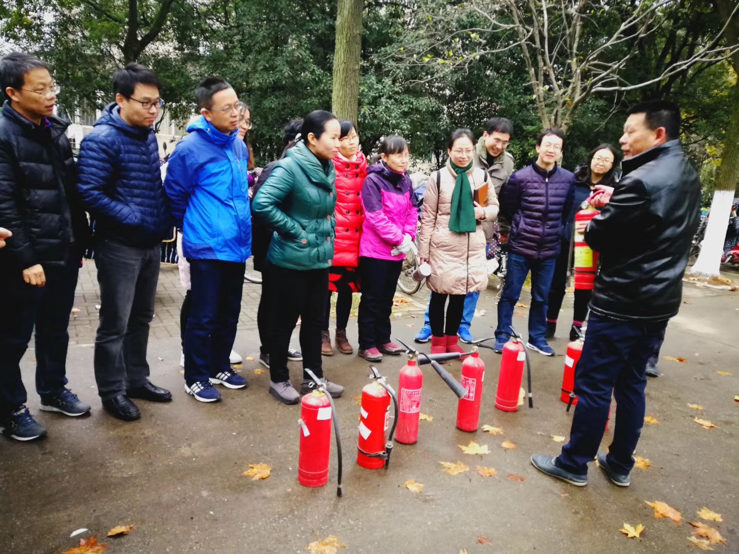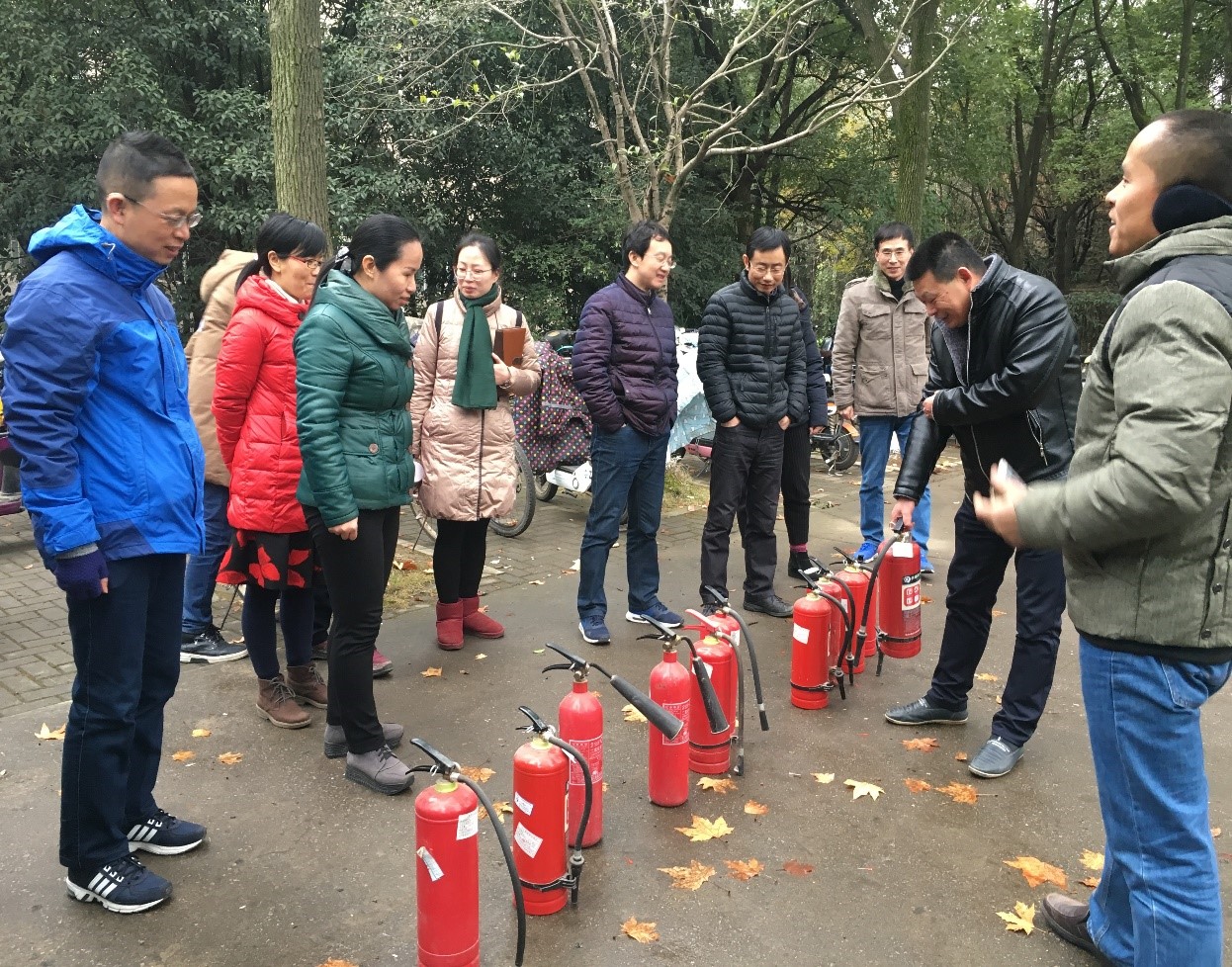 活动分为理论讲解和实际操作两部分进行。首先,保卫处的同志给大家讲解了遇到火情的正确心态和处理办法、灭火器的种类、主要使用场所、使用方法和注意事项,现场引发了大家的热切询问和积极讨论。