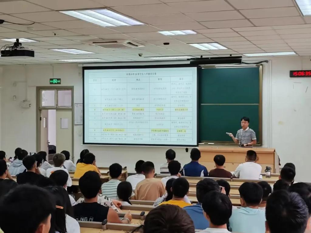 8月30号下午,环境科学与工程学院2023级本科生新生见面会暨军训动员大会在东九楼B101教室顺利举行。会议由2023级辅导员杨凯主持,特邀环境工程专业2019级本科生常涵舟做大学生活经历经验分享,学院全体23级本科生参加大会。