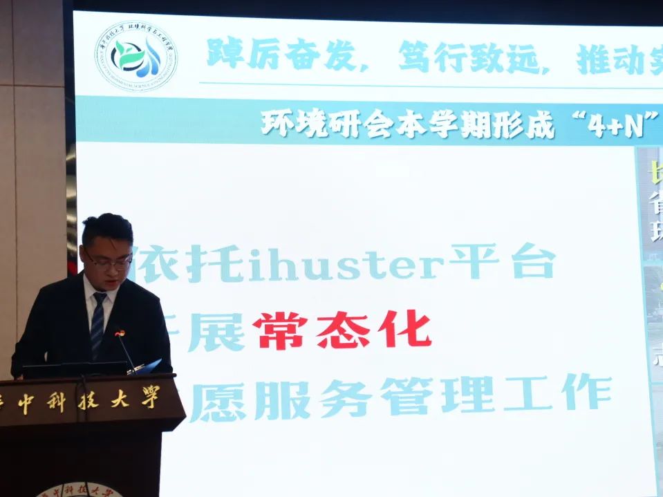 环境研会本学期形成“4+N”实践工作体系。一是依托ihuster平台开展全院研究生志愿者管理工作;二是依托省级“长江生态环保青年宣讲团”开展科普宣讲特色工作;三是依托校级“生态中国·梦之队”志愿服务团开展进社区工作;四是依托院级“青马工程”平台开展校企联动工作。