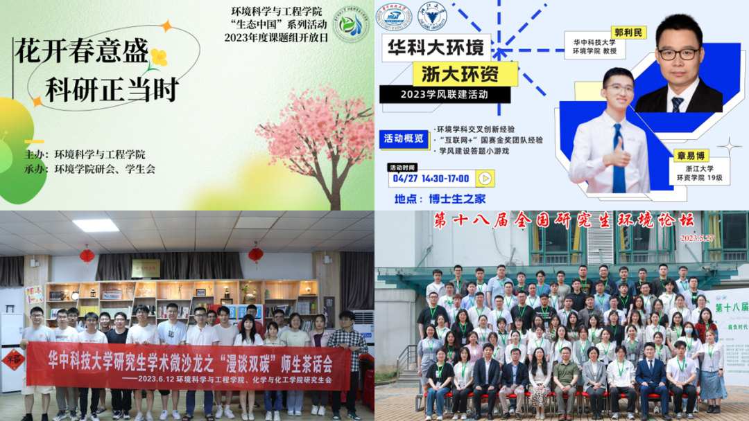 环境研会积极服务于广大同学的成长成才。一是涵育明德之风,做笃学诚信的华中大人。环境研会积极联合浙江大学环资学院开展“学风建设月”系列活动,两院学子共同签署“学风建设倡议书”,取得了良好的育人实效;二是笃行厚学之举,做博学善思的华中大人。环境研会积极组织开展“课题组开放日”、学术“微沙龙”,联合化学与化工学院开展“漫谈双碳”师生茶话会,其中博士参与比例超过50%;三是砥砺创新之志,做勇攀高峰的华中大人。环境研会积极开展双创讲座,邀请“互联网+”国赛金奖团队分享交流。参与协办第十八届全国研究生环境论坛等活动,营造学术交叉创新氛围。