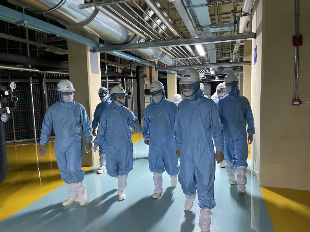 座谈会后,我院师生换上防护服,随柏诚公司工程师们参观了华星光电在建的洁净生产车间。通过实地学习洁净厂房设计的巧思与细节,工程师热心解答不同构建筑物及配套设施的用途原理,让同学们进一步了解洁净系统从方案设计构思到项目施工实施的全过程。