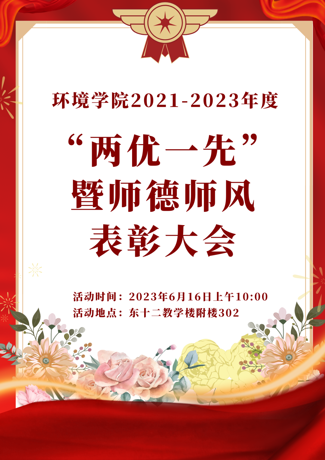 关于召开环境科学与工程学2021-2023年“两优一先”暨师德师风表彰大会的通知