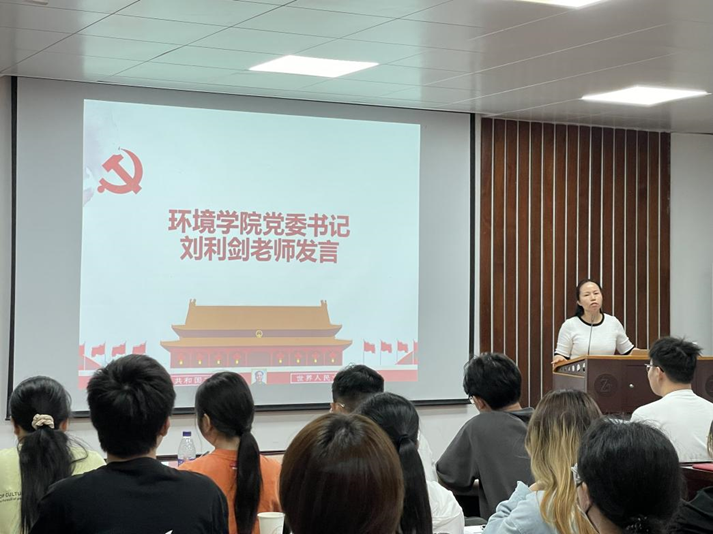 6月6日下午举行培训班结业典礼。环境学院党委副书记,学院分党校副校长周雅琦老师讲授《以中国式现代化推动中华民族伟大复兴》党课 。周老师带领同学们深入学习领会党的二十大精神,希望同学们牢牢把握新时代新征程的中心任务,深刻领会中国式现代化的中国特色和本质要求,助力推动实现中华民族伟大复兴的历史进程。各小组学员代表以“学习二十大”为主题对学习内容进行交流分享,展示学习成果与学习心得。