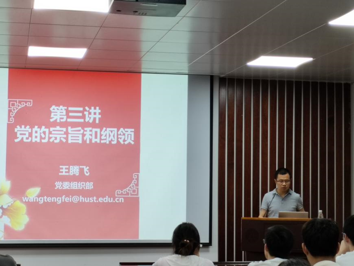 王腾飞老师进行了以《中国共产党的宗旨和纲领》为主题的授课,使学员们深刻认识到党的根基在人民、血脉在人民、力量在人民,并提出学员们应当争做“六有”大学生,自觉培养服务意识,全心全意为人民服务的希望。