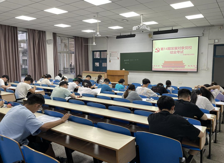 发展对象党校结业考试于6月1日晚上在东十二楼101进行。本次结业考试的主要内容为前期发展对象党课所学习的重要理论知识以及党的二十大内容,考察学员们对党的理论知识掌握情况,以及如何以实际行动做一名合格党员。考试过程中本科生党建工作联席会学习部成员负责监考。考场内秩序井然,学员们认真作答。