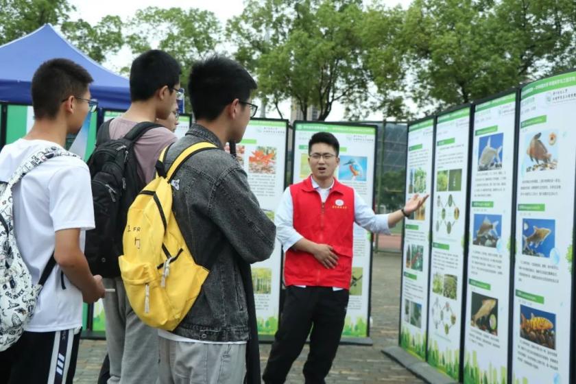 6月5日,环境学院联合长江环保集团在伟德(bevictor)官方网站韵苑路口开展宣传展示,活动分为展览讲解与科普互动两个环节。同学们跟随讲解员的脚步,逐个学习长江生物大保护、湖溪河治理、河湖长制等相关知识,了解学习我国在推动人与自然和谐共生的现代化建设中取得的宝贵成果和经验,根植参与生态环保的责任感和使命感,进一步唤醒同学们的环保意识。