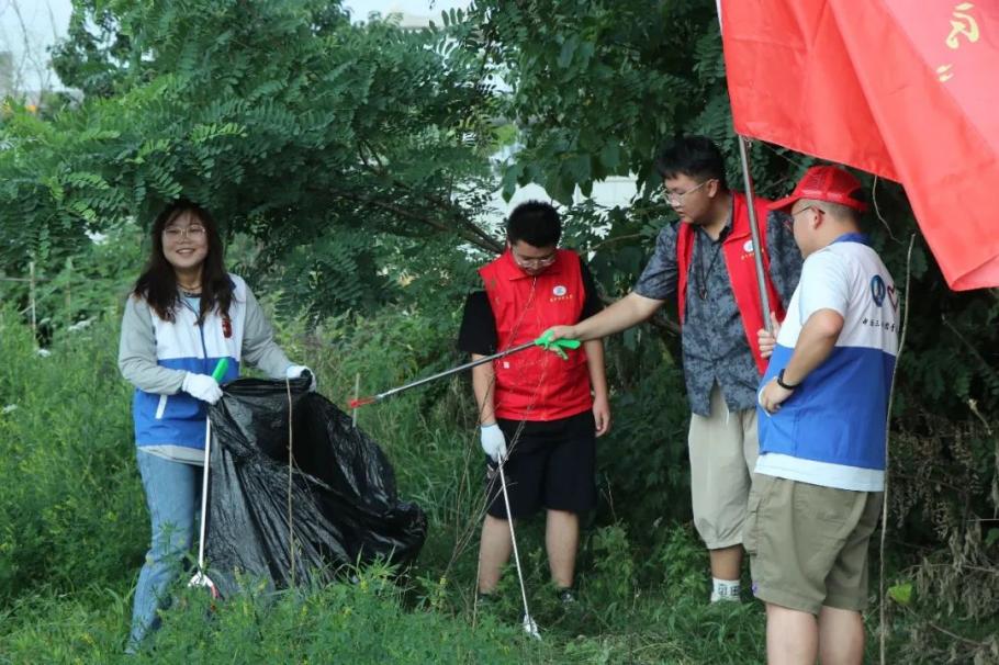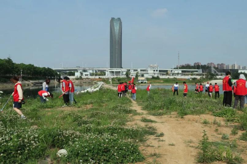 在汤逊湖项目现场,环境学院“青马班”全体学员同长江生态环保志愿服务队一同开展“净滩行动”志愿服务,围绕汤逊湖沿岸捡拾垃圾、整理树木花草,为汤逊湖治理贡献自己的力量,用实际行动践行环保初心。