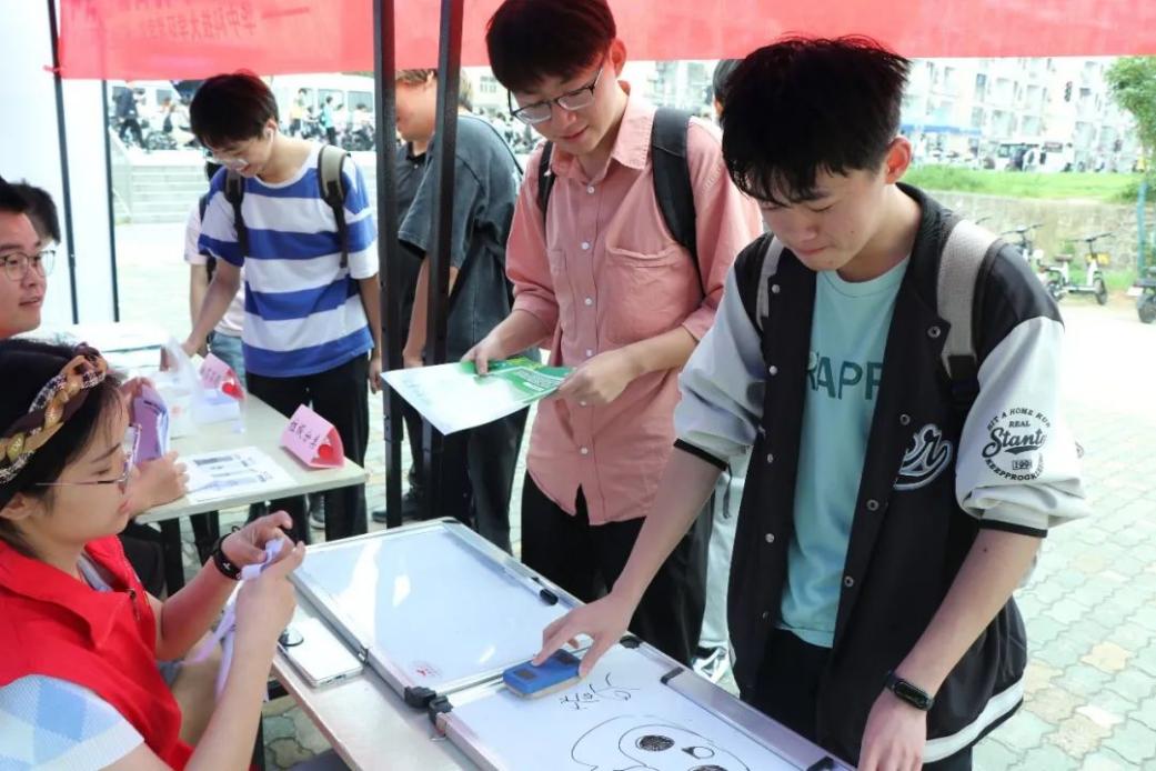 在科普互动现场,参与同学通过你画我猜、垃圾分类小游戏、抽签答题等方式将所学环保知识融会贯通,在寓教于乐中检验学习成果,吸引了不少同学跃跃欲试。