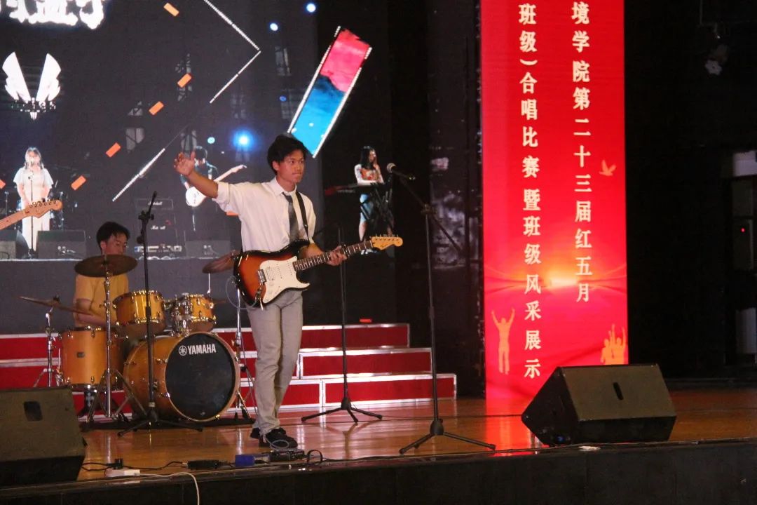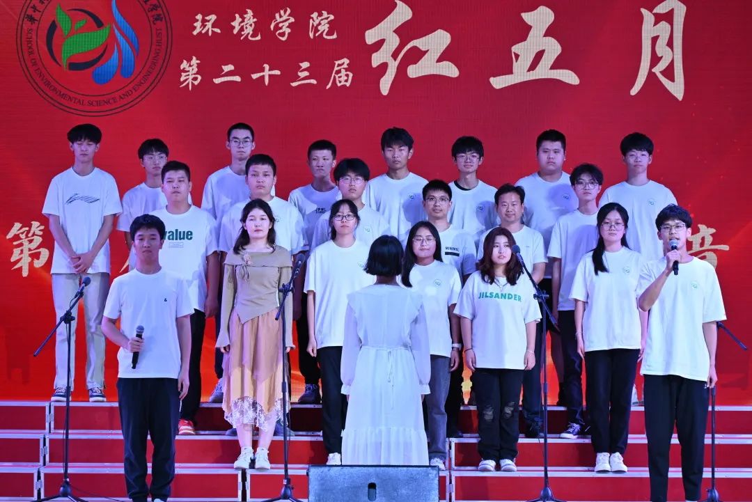 弦音悠扬,歌声激昂,在音符盗手乐队激动人心的演奏中,第二十三届红五月缓缓拉开了序幕。环境学院师生合唱团与现场同学共同演绎《明天会更好》,向师生们描绘出人与自然和谐共生的中国式现代化美丽画卷,为红五月开启第一个篇章。