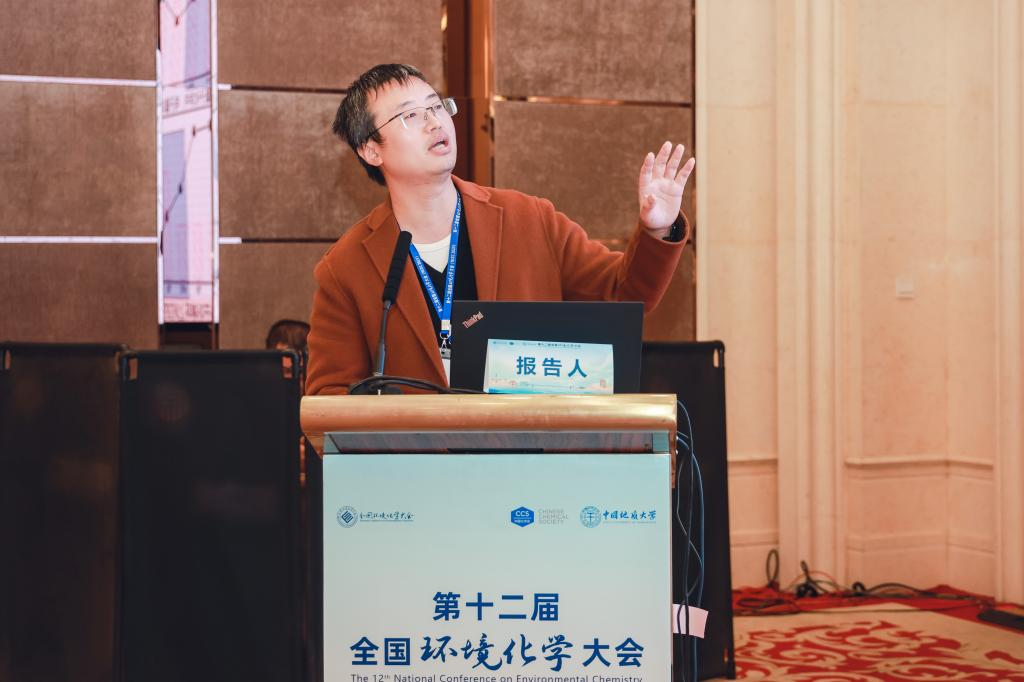 同日第20分会场“水处理氧化还原技术”上,胡敬平教授做了题为“卟啉环取代基位点对铁卟啉活化过氧化氢降解双酚A研究”的邀请报告。