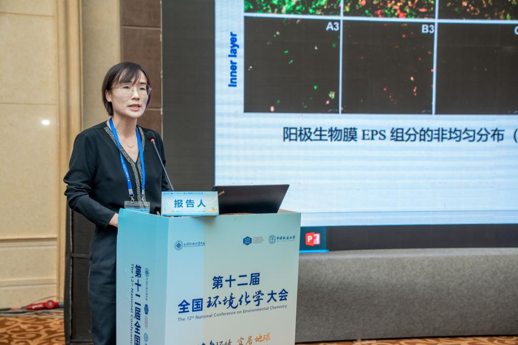 在11月19日第62分会场“环境电化学”上,侯慧杰教授做了题为“电信号通讯阻滞下化学信号通讯在修复电活性生物膜形成及电化学活性中的作用”的邀请报告。