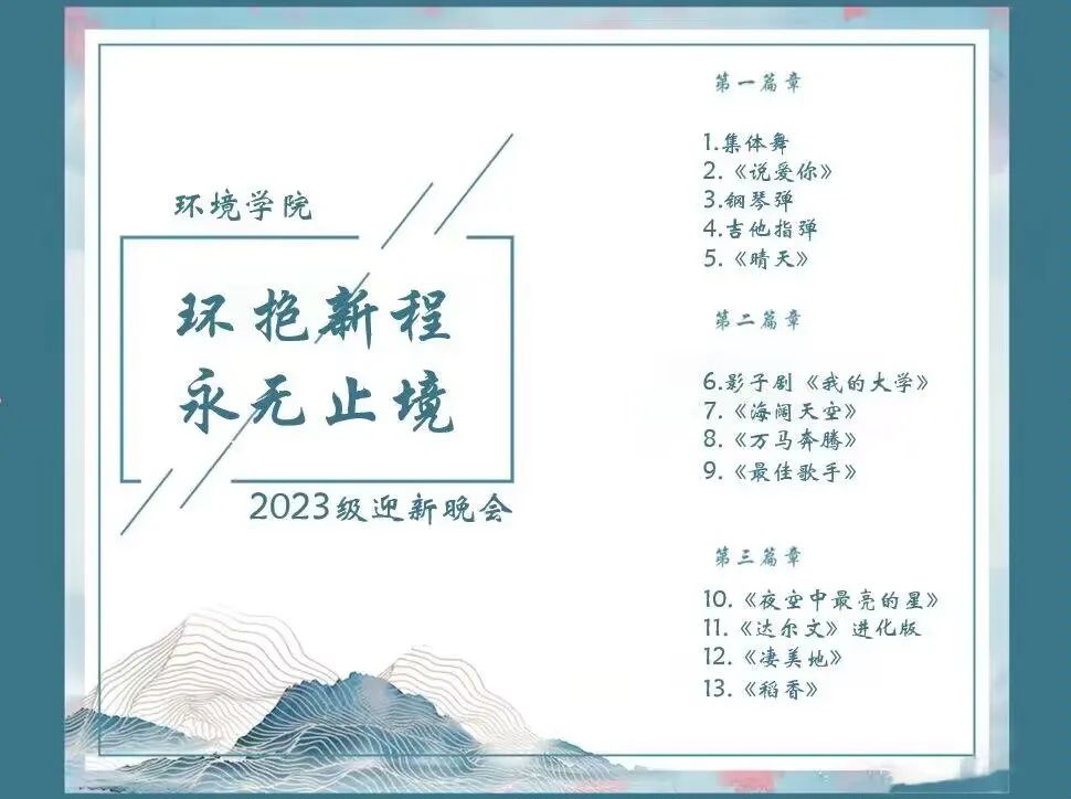 环境学院2023级迎新晚会至此落幕,每一位表演者的倾情演绎,每一位工作人员的幕后付出,都让今晚变得难忘而美好。“环抱新程,永无止境”,环境学院是新的起点,也是“心”的启点,更是同学们梦想开花的地方,愿所有新生同学们在环境学院中拼搏进取、不负韶华。