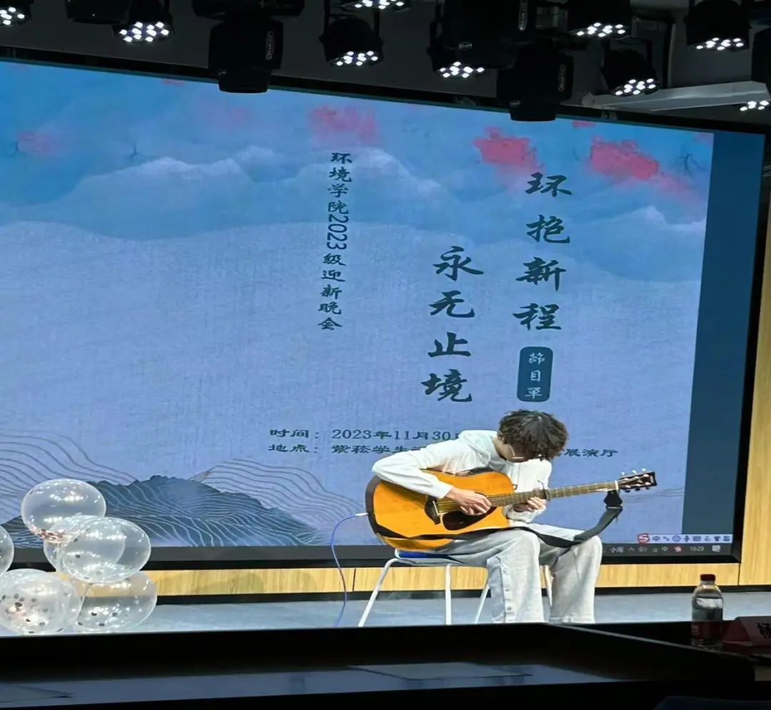 最后给卓2301班叶青,环卓2301班钟子恒,徐浩原,环境2302班常亦斐四位同学组成的乐队为我们带来了《稻香》,带大家回到了最初的美好。童年的纸飞机,穿梭时空飞回了在场人的手中,勇敢去闯吧,沿着稻香河流继续奔跑去到最美的地方!