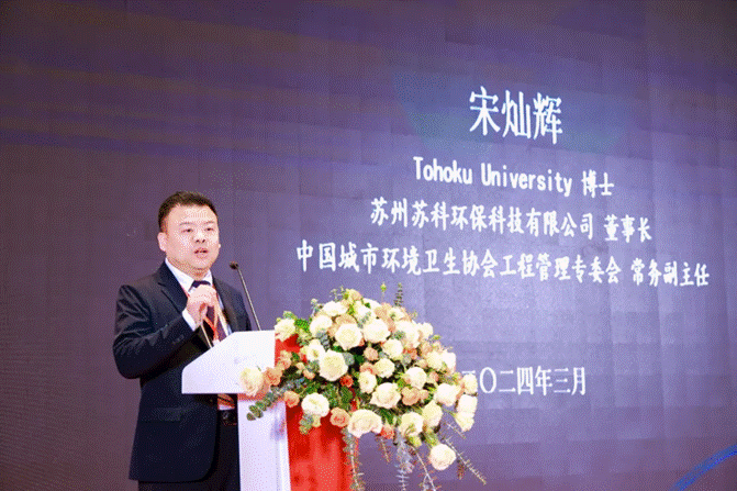 苏州苏科环保科技有限公司董事长、CEO宋灿辉作《活得久,活得好——系统性创新和风险管理》主题报告。他以苏州苏科环保科技有限公司为例,强调企业要做好风险管理,积极创新,细分业务领域,形成全产业链思维,做到产品化交付。