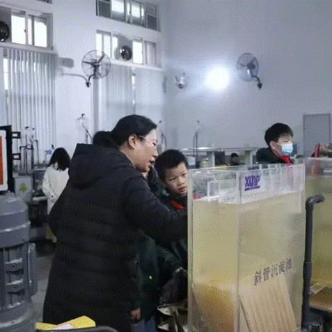 随后,小朋友们来到“水质工程综合实验厅”省级重点实验室。在厅内,实验室老师付四立通过系统操作演示和实物介绍向同学们展示了水质净化的神奇过程,包括絮凝、沉淀、过滤和吸附等工序,带领同学们参观了最新的全自动智能识别矾花投药系统。小朋友们对实验厅的模型装置十分好奇,纷纷举手提问。在了解到每一滴干净的自来水都来之不易后,孩子们纷纷表示要在日常生活中养成节约用水的好习惯。