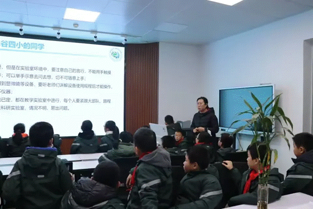 虽然天空下着小雨,但小朋友们在志愿者和老师的带领下,依然兴致勃勃地来到环境楼实验室。在会议大厅,环境学院实验室技术老师王丽娜首先开展实验室安全相关培训讲解,涉及生命安全、用电安全、生物环境安全等方面,同学们聚精会神聆听,不时与老师进行互动,积极回答问题。