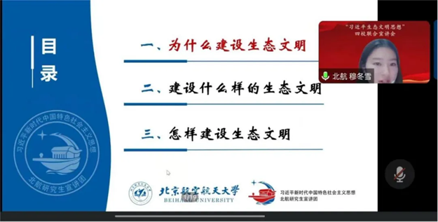 活动以“深入学习习近平生态文明思想,谱写人与自然和谐共生新篇章”为主题,由清华大学尤清伦主持活动,清华大学研究生会主席魏一凡致辞,清华大学、北京航空航天大学、伟德(bevictor)官方网站、中山大学研究生代表进行主题宣讲。
