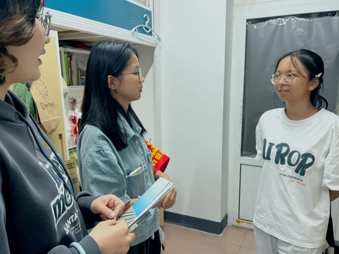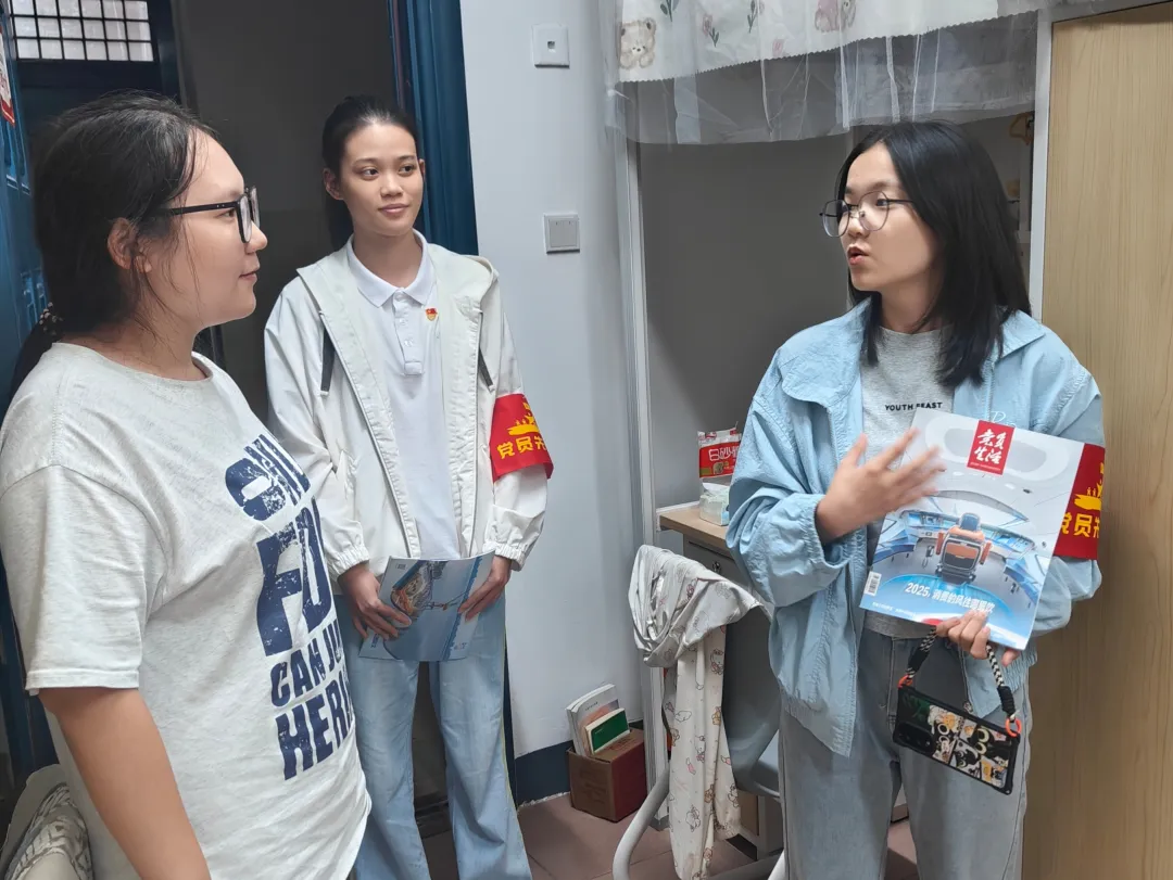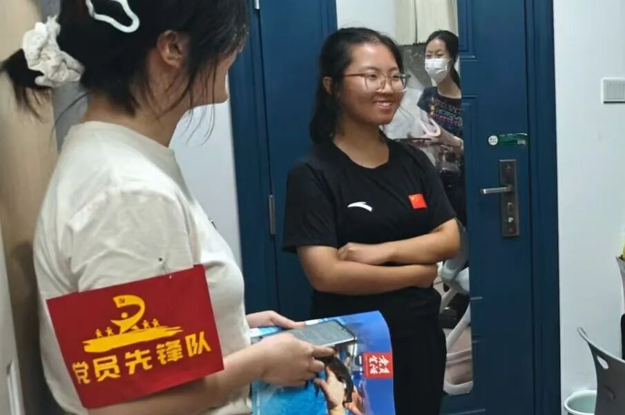 活动中,党员们胸前的党徽熠熠生辉,臂上的“党员先锋队”袖章格外醒目。面对新生们提出的“如何平衡学习与社团”“专业就业方向有哪些”“选课系统怎么操作”等各类问题,学长学姐们耐心倾听、逐一解答,用接地气的话语化解新生的焦虑与困惑。从课程选择的细节到未来规划的建议,从生活习惯的磨合到心理状态的调适,党员们的细致回应让每个寝室都洋溢着温馨的氛围,无形中拉近了党群距离,筑牢了信任桥梁。
