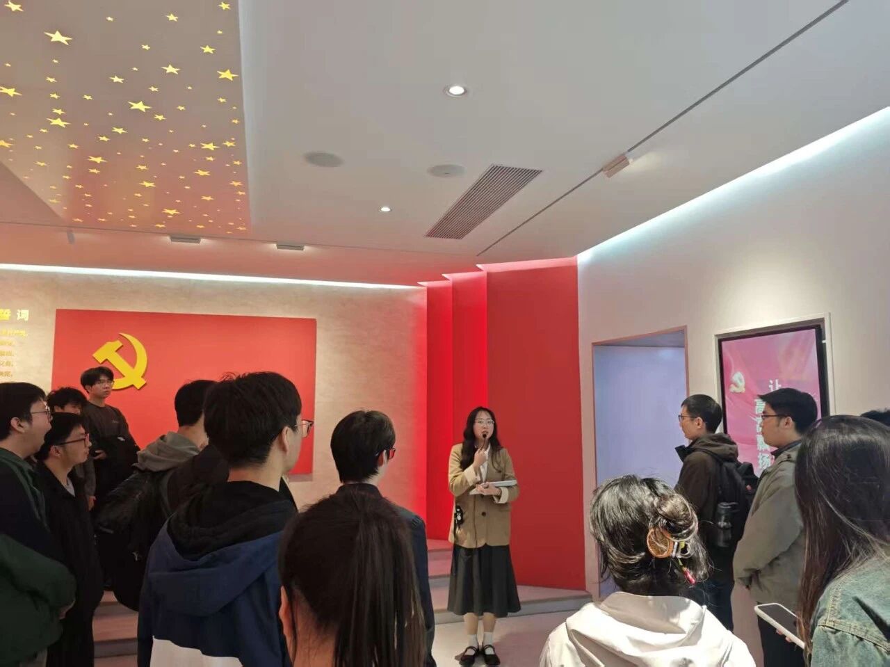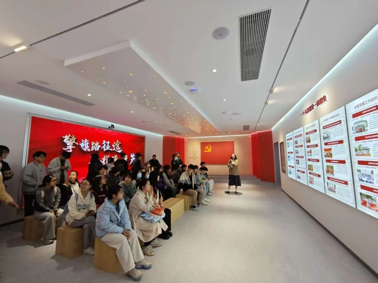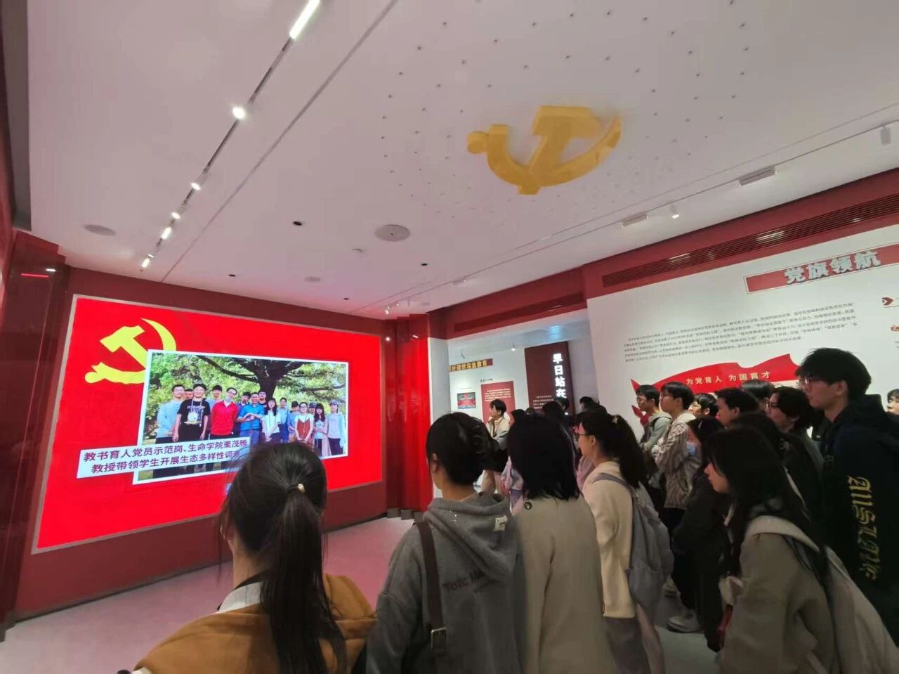 为强化理想信念教育,传承红色基因,提升综合素养,环境学院于11月13日下午4点组织2025级新生党员、研究生入党积极分子和党建工作中心成员参观位于南四楼一楼的“党旗领航”教育基地。