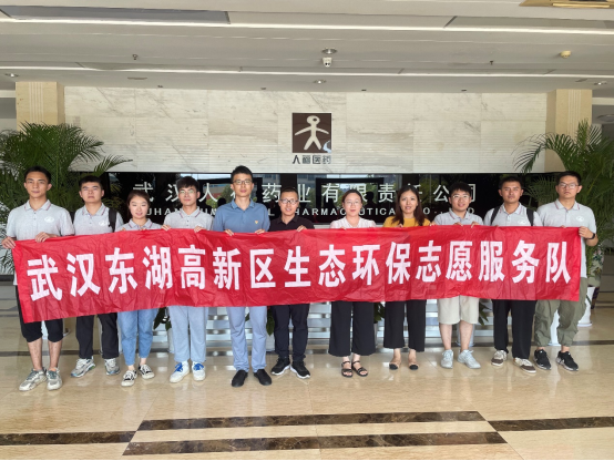 为深入践行绿水青山就是金山银山理念,全面加强生态环境保护,推进生态文明建设,牢记习近平总书记嘱托,环境科学与工程学院生态实践队开展了“聚世界光、为天下谷、讲改革史、走生态路”主题社会实践活动。2022年8月19日,环境学院“访武汉高新,话美丽光谷”生态文明口述史实践队赴东湖新技术开发区人福药业有限责任公司进行调研。本次调研由环境学院杨丹妮老师带队,共有八名研究生参与。