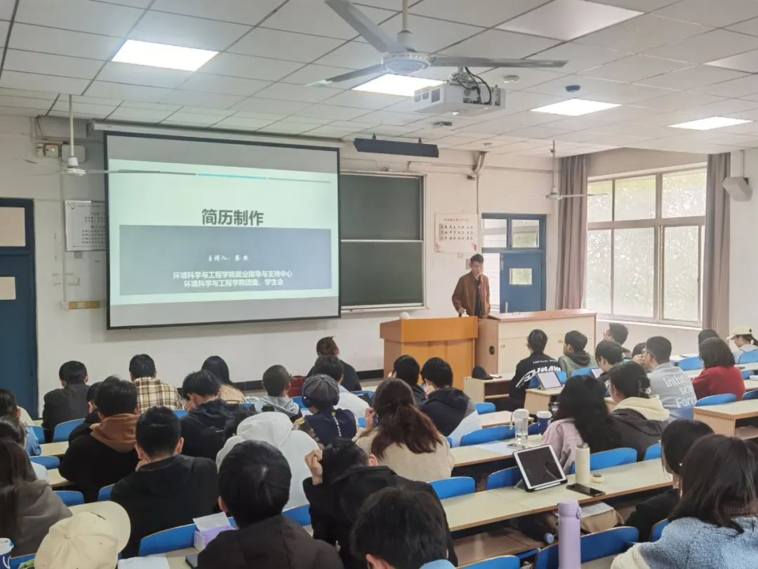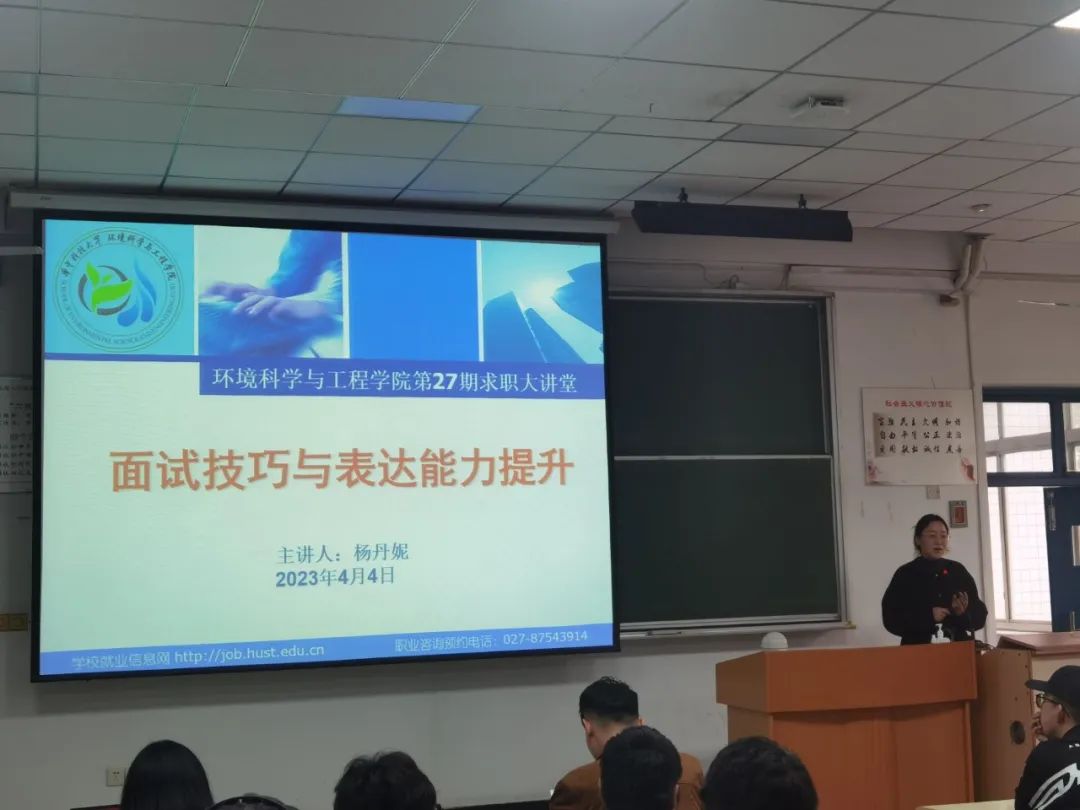 2023年4月4日下午4点,环境科学与工程学院在东十二302开展了2023届就业动员大会暨第三届 “环启蔚来”求职挑战赛必修课程培训,含面试技巧与表达能力提升及简历制作和建立求职网络的培训。