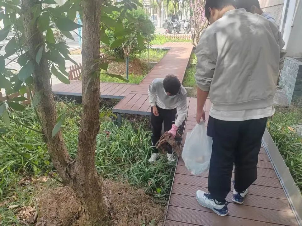 活动主要内容包括:园中垃圾拾捡、落叶断枝清理、枯死植株移除、杂乱花丛整理以及整体美观美化。经过同学们的劳动,雨水花园清理出不少杂物和枯枝,整个园区外貌看起来焕然一新。