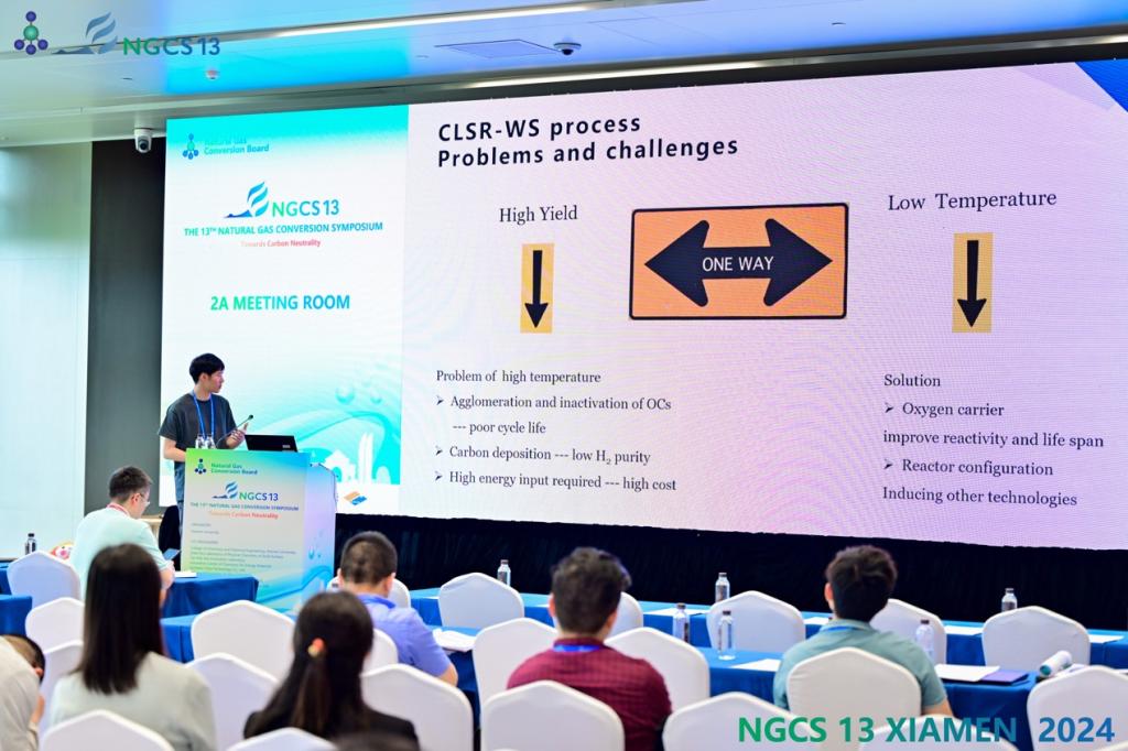 作为跨专业攻读化工能源材料的研究者,他将"系统化知识重构"作为科研第一要务。本科环境地质的学习经历虽与现研究方向存在学科壁垒,却培养了他独特的环境思维视角。在研一入学前,他就开始广泛阅读优秀期刊论文,逐渐了解本领域的前沿热点与技术难题。入学后,实验室成为他验证猜想的主战场。面对贵重的实验仪器和繁琐的实验步骤,他沉下心来,一点一点精读设备手册,学习仪器的表征原理,测试步骤与分析方法。这种高效的学习使他在入学两个月内,即能自主操作开展样品的制备、测试工作。在固定床实验的测试结合多项表征结果使他很快意识到化学链制氢技术中反应活性差和循环稳定性差的瓶颈问题。针对化学链制氢中反应活性与循环稳定性的双重困境,在王训老师的指导下,他提出"高熵氧载体+光热协同催化"的创新解决方案,成功将反应温度从800度降至550度,反应性能处于行业前列。