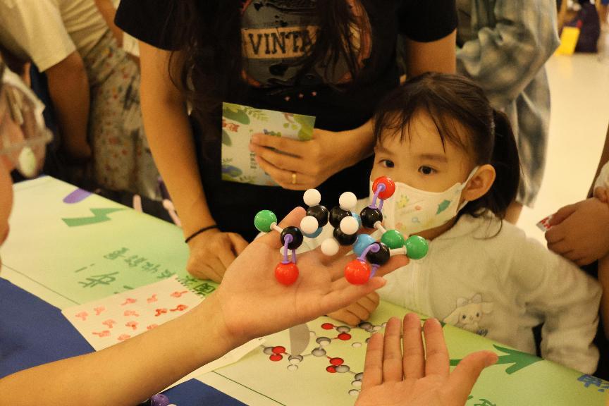 “看不见的环保力量”项目通过让参与者动手进行油脂分子模型拆解模拟脂肪降解过程,并通过电脑模型深入介绍菌类是如何“吃掉”油脂的。