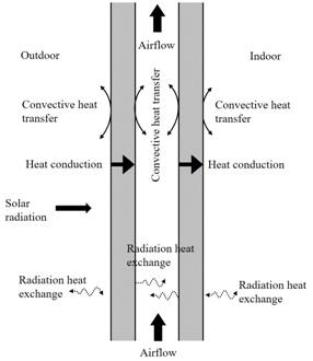 空心砌块通风墙体是一种新型的动态隔热围护结构,该结构可利用空心砌块形成的空腔作为空调排风的通道,有效实现墙体内部冷、热量的转移。该论文为国家自然科学基金课题成果,该技术实现低品位能源的利用,可减弱室外环境对房间内热环境的影响,提升环境的热舒适性。研究论文通过耦合通风墙体的FDFD模型和NTU模型,建立了空心砌块通风墙体的三维传热模型,并通过实验验证该模型的准确性。利用验证后的传热模型研究不同因素对通风墙体热性能的影响,包括空腔内气流速度、空腔入口温度和空腔尺寸。计算不同工况下通风墙体内表面温度以及热流密度,采用衰减系数和延迟时间两个参数用于评价通风墙体的热性能,研究结果表明空腔尺寸对该墙体的传热特性影响最大。研究成果对该通风墙体的应用发展具有重要意义。