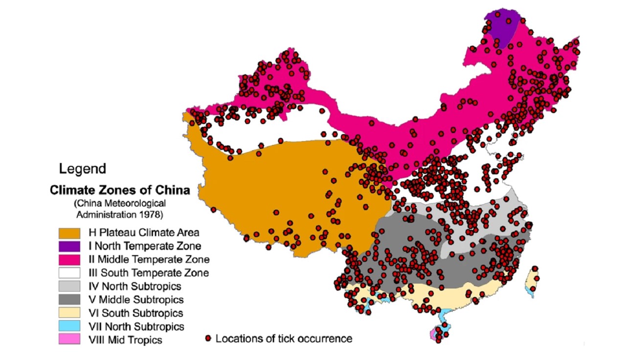 本研究第一次系统揭示了中国的蜱虫种类及详细地理分布,为中国蜱虫的空间分析提供了基础,也为中国蜱虫病的防治提供理论支撑。