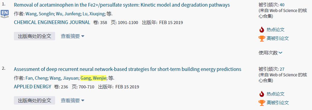 我院入选的两篇ESI热点论文分别为:(1)Removal of acetaminophen in the Fe2+/persulfate system: Kinetic model and degradation pathways(Chemical Engineering Journal, 2019, 358, 1091-1100),伟德(bevictor)官方网站环境科学与工程学院为第一作者单位兼通讯作者单位,第一作者为我院王松林教授,通讯作者为我院谢鹏超副教授,Web of Science被引频次为40次;(2)Assessment of deep recurrent neural network-based strategies for short-term building energy predictions(Applied Energy, 2019, 236, 700-710),伟德(bevictor)官方网站环境科学与工程学院与深圳大学土木与交通工程学院分别为通讯作者单位和第一作者单位,我院刚文杰副教授为通讯作者,Web of Science被引频次为27次。上述两篇论文亦同时入选ESI高被引论文。