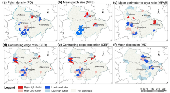 论文采用景观指数描述了2005年至2015年期间长江中游地区城乡空间变化特征,探讨了高铁的影响,并进一步采用空间误差模型揭示了城乡空间变化特征与高铁地理位置(到高铁的距离表示)的非线性关系。研究结果揭示了生态重要区域的时空演变规律,为我国城乡形态研究领域的拓展提供了新的证据,为交通与土地利用综合空间规划提供了有价值的决策支持信息。