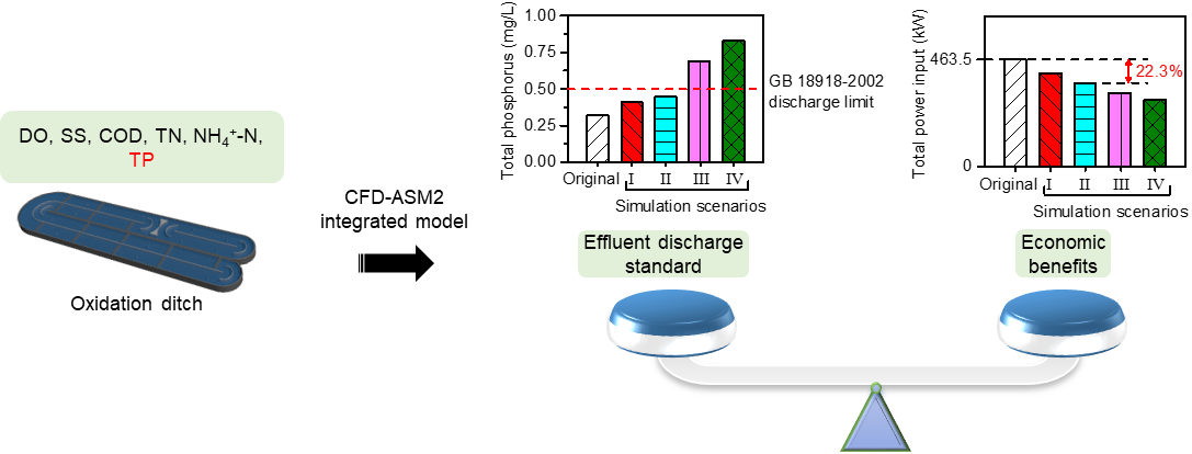 该研究是在题组长达十多年的环境流体数值模拟研究基础上完成的,课题组长期从事以氧化沟、高效澄清池等为代表的CFD模拟研究工作,在研究初期采用滑移壁面模型与风扇模型分别作为曝气转碟机与水下推进器的简化模型,极大降低模拟计算量而成功对氧化沟的流场进行模拟(Water Research, 2011, 45(11), 3439-3452; Water Science & Technology, 2010, 62(2), 256-265);在随后的研究中,逐步攻克了液-固两相流模型的构建,成功将污泥沉降性能数据导入至CFD模型中,并模拟了污泥浓度分布情况(Chemical Engineering Science, 2014, 109, 296-305);同时也探索了液-气两相流模型的构建,成功模拟了氧化沟中气含率的分布情况(Water Science & Technology, 2018, 78(9): 1956-1965);以上研究均为本论文的发表打下了坚实的基础,最终能成功将氧化沟中水力学信息与生化反应过程耦合模拟,构建CFD-ASM2耦合模型,有助于氧化沟的设计及运行控制。另一方面,随着近些年污水处理厂提标改造的实施,更多复杂的新型反应器应用于污水深度处理,其中高效澄清池是最用常用的工艺之一,课题组也成功将CFD模拟技术应用于高效澄清池的运行优化,有效保障其高效稳定运行(Biochemical Engineering Journal, 2020, 155, 107489)。固废资源化在环境流体数值模拟领域的丰富经验与成果将继续助力于环保技术的发展与环境人才的培养。