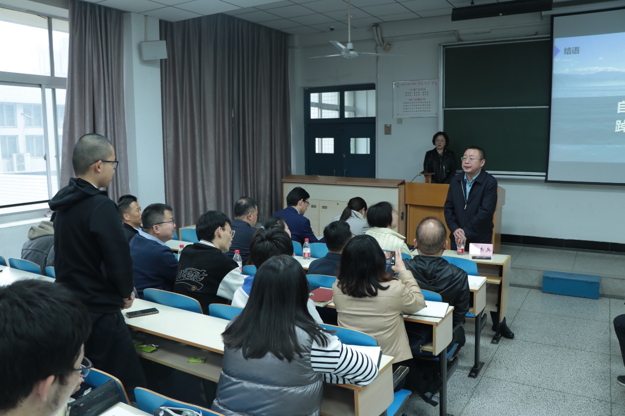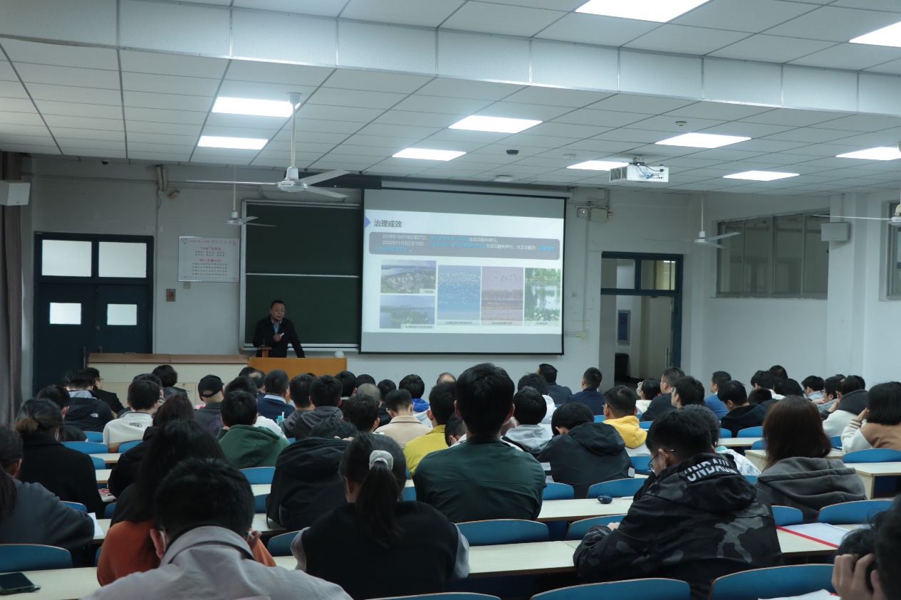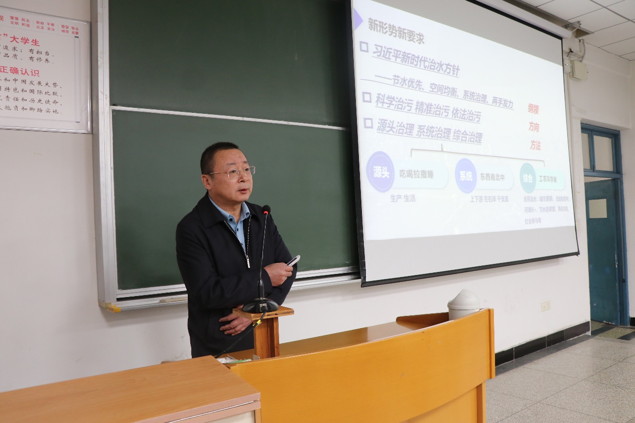 他生动地介绍了流域综合治理的管理过程,引领大家思考了以管网为核心的城市水环境治理策略。王局长寄语我院师生要“自信自强、守正创新、踔厉奋发、勇毅前行”,以昂扬向上的奋斗姿态为我国的水环境治理做出贡献。