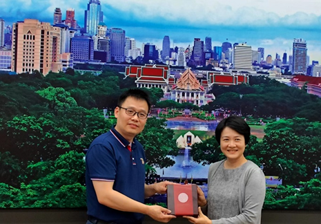 5月12日上午,朱拉隆功大学负责国际学术交流事务的主任Sukalin Wanakasemsan 女士亲切会见了郭利民教授等一行。双方首先就两校在学校特点、学院设置、学科特色和发展现状进行了交流,并就可能的合作方面和方式进行了探讨。随后,郭利民代表我校向Sukalin Wanakasemsan主任赠送了代表中华传统文化并附有我校Logo的礼物——日晷,并热情邀请Sukalin Wanakasemsan主任在方便的时候访问我校。