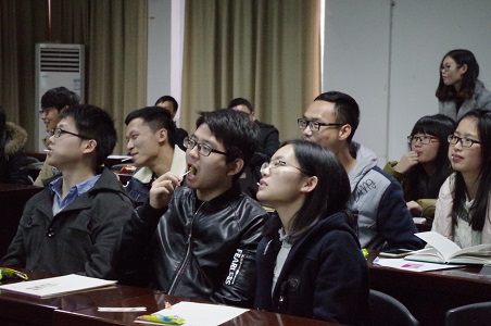 活动分为三个环节,由快速问答、抢答和淘汰赛组成。现场十分活跃,引来了学院研究生辅导员姜薇老师的积极参与。活动出的有相关问题都比较新颖有难度,同学在答题的过程中经常抓耳挠腮的很是纠结。不过,在抢答的环节中,大家一个个想破脑袋,争先抢后的举手抢答,只为了为本组争取宝贵的一分。