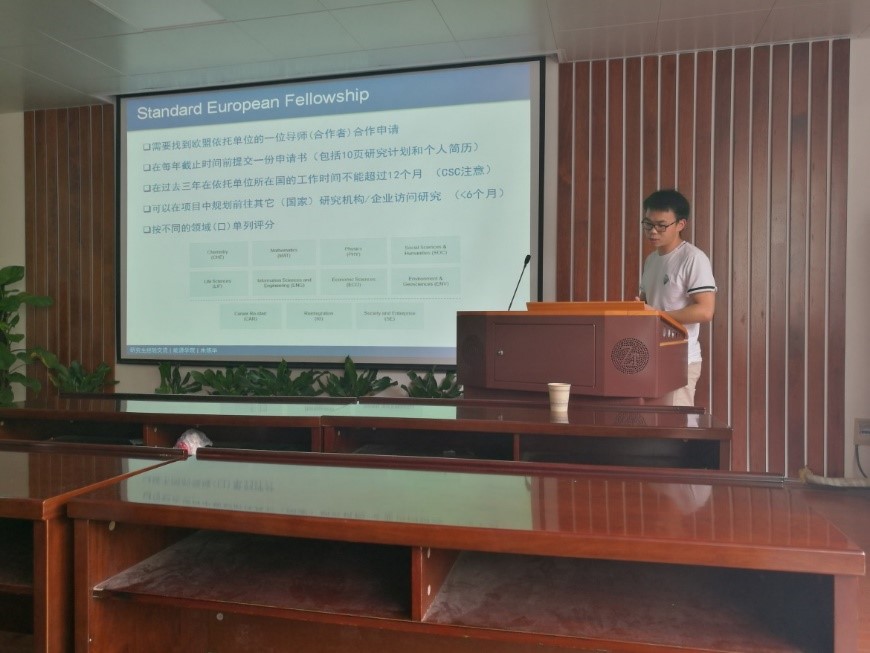 朱炼华同学主要就“玛丽居里学者”项目申请经验进行了分享。他讲了个人体会及建议:1、不要轻易换研究方向,确实要换得趁早;2、抓住合适的国外交流机会:CSC/短期出国,不要太晚出去;3、善于团队合作,但不要过分占用自己课题的时间;4、尽早寻找潜在的合作导师,选择合适的一流导师和依托单位;5、申请玛丽居里奖学金时,寻求依托单位的Research Support Office的帮助、建议等。