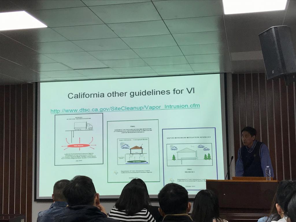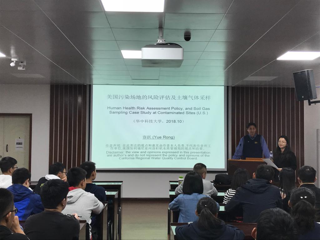 应我院王琳玲老师的邀请,美国加利福尼亚州环保署水质控制管理局洛杉矶分局地下水污染防治和清理处处长容跃博士到我院进行为期4天的交流访问,并于环境学院207会议室开展了主题为“美国污染场地的风险评估与土壤气体采集”以及“美国加州场地原位修复管理方法”的讲座。环境学院多名教师及硕博研究生、本科生到场聆听。