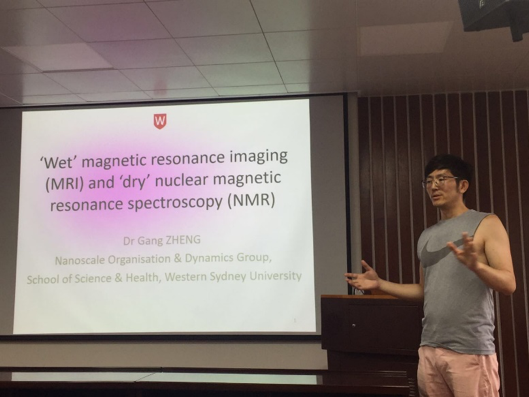 (文/图 齐宇彤 李鸿博)2019年7月17日下午,应我院王琳玲老师邀请,澳大利亚西悉尼大学科学与健康学院高级讲师郑钢博士来我院进行交流访问。在环境科学与工程学院207会议室做了题为“‘Wet’ Magnetic Resonance Imaging and ‘Dry’ Nuclear Magnetic Resonance Spectroscopy”的专题报告,环境科学研究所和市政工程系的研究生及本科生等到场聆听了讲座。