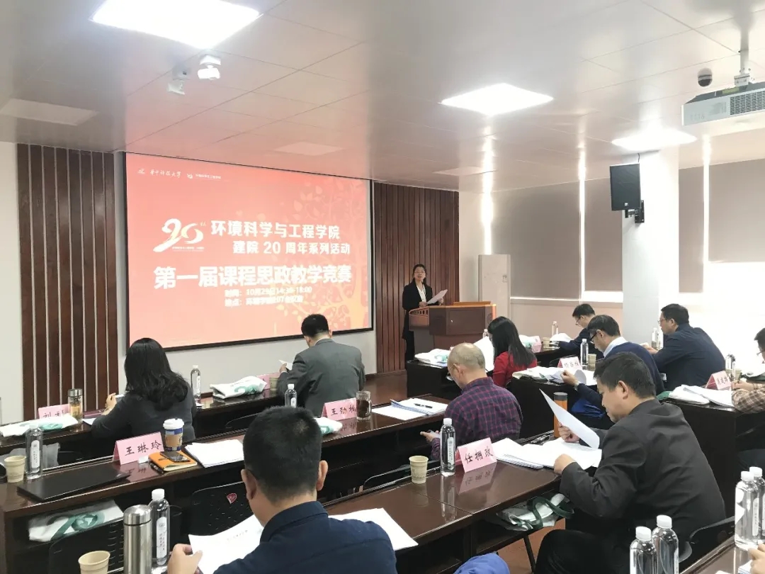 10月29日下午,环境科学与工程学院第一届课程思政教学竞赛在东十三楼环境学院207会议室成功举行。本次教学竞赛由环境学院党委发起,得到了各系教工党支部的积极响应,是环境学院积极响应和深入贯彻执行习近平总书记在高校思想政治理论课老师座谈会上重要讲话精神和全国高校思想政治工作会议精神,推动学院专业课程思政建设和落实立德树人根本任务的重要工作步骤之一。