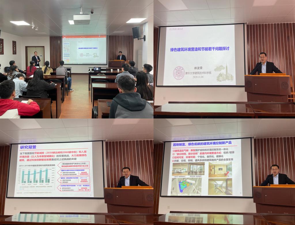 2020年11月6日下午3时,环境科学与工程学院建筑环境与能源应用工程系徐新华教授邀请了清华大学林波荣教授,面向青年教师以及研究生、本科生进行了学术交流以及学科前沿的探讨。