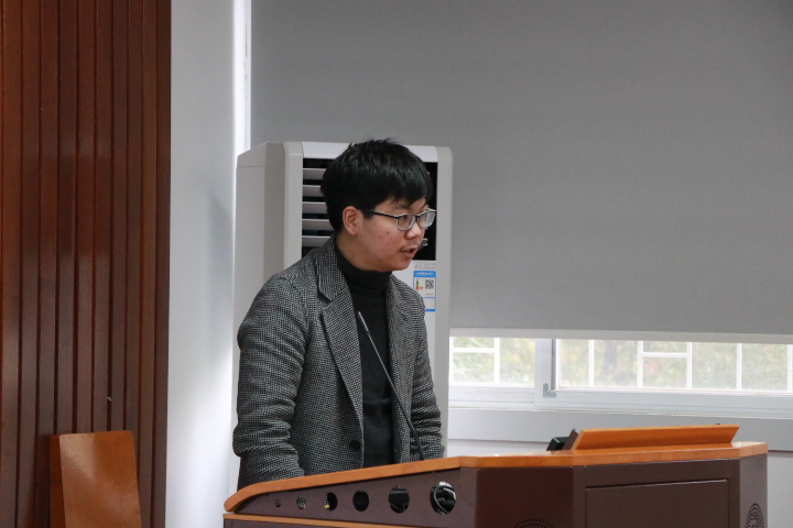 第二组由张达同学进行答辩,题目是“一种基于磁化水技术的可拆可调型柔性阻垢器”。张达同学为评委们讲解了其工作原理与外观特点,分析了其产业化的可能性。