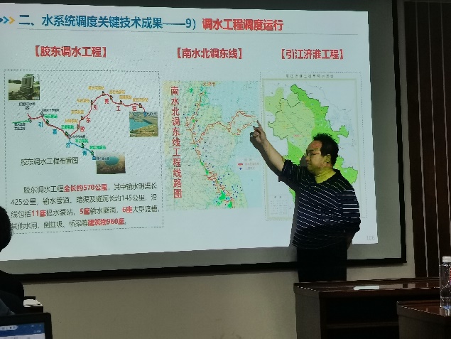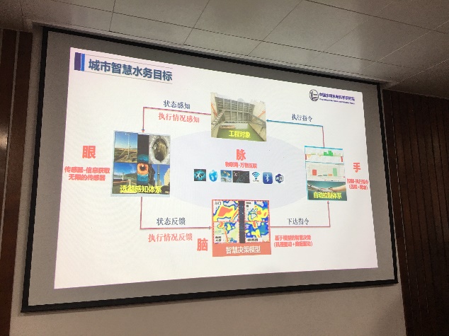 雷教授以城市水系统问题日益严重的现状引出问题:自然-社会“二元”水循环及其伴生系统过程失控,从而提出了智慧水务的概念。雷教授以无人驾驶为例,为大家解释了智慧水务是由智慧地球、数字流域、智慧流域发展而来,通过汇聚数据形成知识,最终凝聚成经营城市水务的智慧。城市智慧水务考虑了河流、取水供水、水处理、退水等过程,是一个整体的概念。城市智慧水务大致包括四个方面,一是透彻感知,基于空天地一体化监测系统,实现流域全要素状态的数据采集;二是智慧融合,以物联网为载体,将监测数据、决策模型和工程控制有机融合;三是智慧决策,以机理驱动模型、数据驱动模型为基础,实现智慧决策;四是自动控制,以自动控制设备和算法为基础,实现工程的自动控制。雷教授将以上四个组成部分分别比喻为“眼、脉、脑、手”,让大家便于理解和把握它们之间的关系。讲了基本的概念和组成之后,雷教授以自己主持和参与的福州市城市智慧水务为实例,为大家讲述了“眼、脉、脑、手”在实际工程中的运用。之后,雷教授又为大家介绍了北京市多水源联合调度模型、南水北调中线工程、南水北调东线工程、胶东调水工程、引江济淮工程等水系统调度关键技术成果。