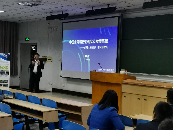 讲座后的互动环节,各位同学反应热烈,分别从低碳水环境、膜处理产生的固体废物去向、创业初期如何坚持、如何看待企业自主创新等方面提出自己的问题,宋老师也与同学们进行了热情耐心地交流。此次讲座报告使同学们加深了对中国水环境行业现状及发展前景的认识。