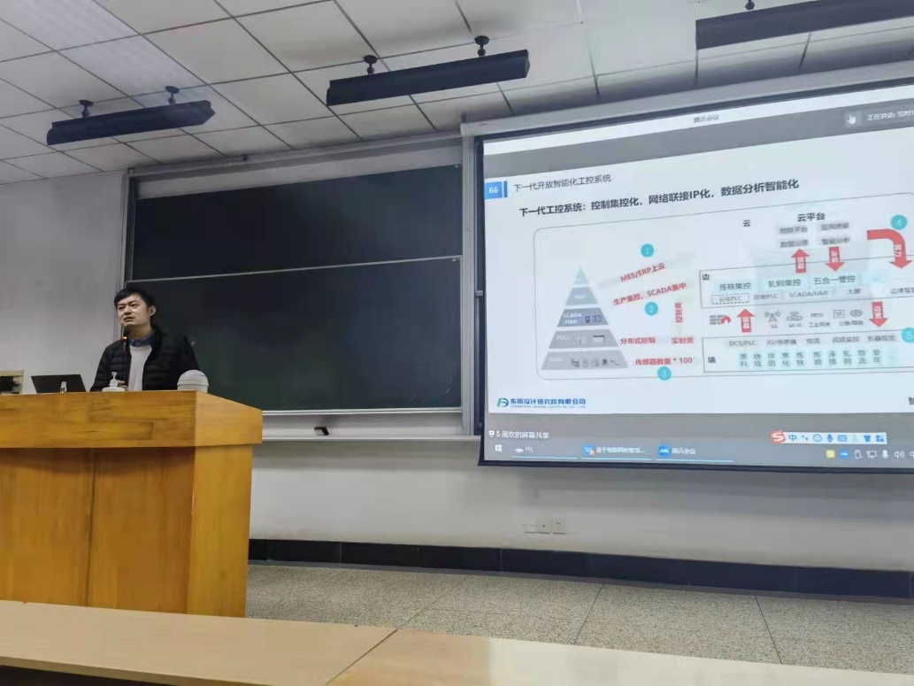 2021年12月14日晚,东风设计研究院有限公司技术中心主任助理周欢先生在东十二楼F201通过线下线上方式作《基于物联网的智慧建筑运维管理》讲座,线下听众为环境科学与工程学院本科生及部分研究生,线上听众主要为我校校友。