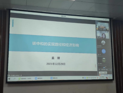 2021年12月29日晚,在环境学院东十三楼207会议室,伦敦大学学院(UCL)孟靖博士为环境科学与工程学院师生作《碳中和的实现路径与经济影响》讲座。