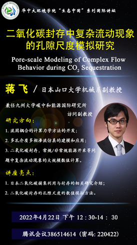 环境学院“生态中国”国际讲坛系列--日本山口大学机械系蒋飞副教授做《二氧化碳封存中复杂流动现象的孔隙尺度模拟研究》讲座