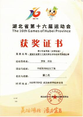 2022年7月9日,湖北省第十六届运动会青少年体育类(大学生组)暨湖北省第十三届大学生运动会体育舞蹈比赛在汉举办,共有武汉大学、武汉理工大学、华中师范大学、武汉体育学院等省内28所高校、1000余名选手参赛。